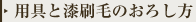 | 塗料材料 | カシュー#53透、カシュー刷毛用シンナー、テレピン油 |