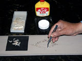 ここがポイント(2) (研磨)アテ木を使い、最初に#240サンドペーパーにて荒研ぎし、次に#360サンドペーパーにて中研ぎし、最後に#500サンドペーパーにて指を使って模様を見ながら仕上げ研ぎをする。ぞうきんにて汚れを取る。 |
